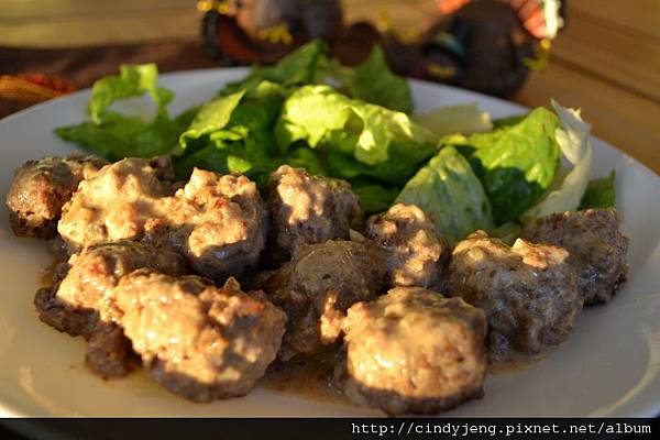 做好的gravy倒入已經煎好的小丸子裡頭 就是一道讓人吃不夠的瑞典肉丸 吃得很厶ㄨㄚˋ ㄘㄨ一啊~ 不夠吃啦!!