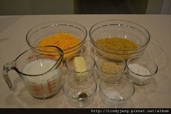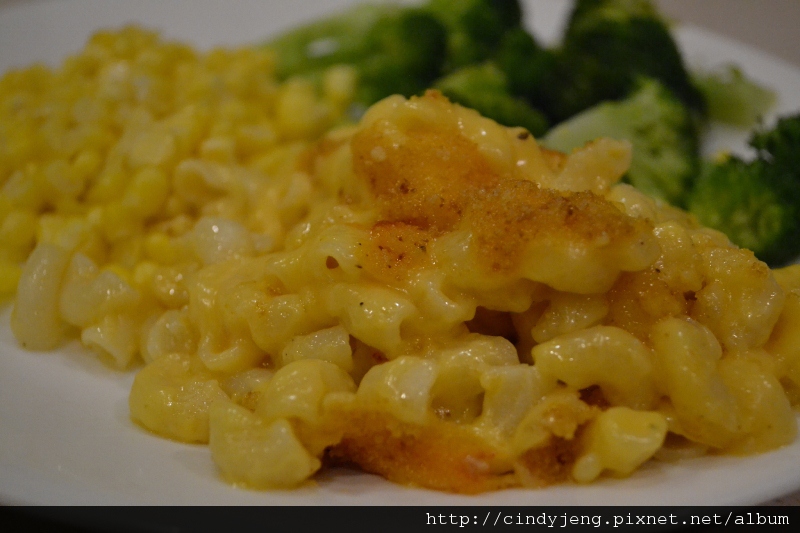 所以 就我和兩隻小的在家吃晚餐 可以簡單弄 今晚決定動手做從沒有嘗試親手做過的Macaroni And Cheese 這個是很普遍的食物 餐廳裡頭的兒通菜單通常都有這個選項 平常我都是買盒裝的速成品 就煮煮通心麵 再加點牛奶 奶油(奶油部分我都省略) 加上一大包附帶的乾粉 攪拌就完成了 孩子很愛吃 所以有時候就是小朋友的懶人午餐 或是晚餐裡頭的一個配菜 沒有當過晚餐主菜的 尤其是因為老公 要一個大男人把這個當主菜真的太隨便了點(加上他會避免澱粉類 因為會發胖) 今天晚上 正好是個好機會 阿珠又假裝愛心媽媽 親手做這個Macaroni And Cheese 其實挺簡單的 然後再另外準備兩道蔬菜 就是兒子的晚餐囉~