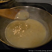 (煮熟之後將少分倒出 放到已經噴了cooking spray或是抹了油的烤盤上面 備用)